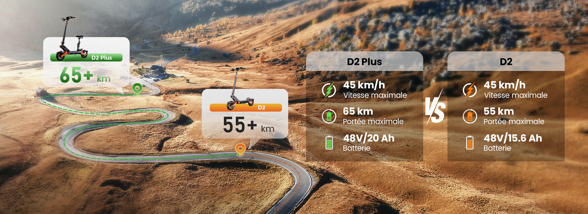 Le S10MAX offre une autonomie maximale de 60 km. Ce résultat est obtenu en laboratoire avec une charge de 75kg sur route plate à une vitesse constante de 15 km/h. En conditions réelles, l'autonomie peut varier selon votre vitesse, votre poids, le type de terrain (comme les montées) et la température. Dans une utilisation normale, une autonomie fiable de 50 à 55 km est tout à fait réalisable. Pour maximiser l'autonomie, nous vous recommandons d'utiliser des modes de conduite équilibrés.