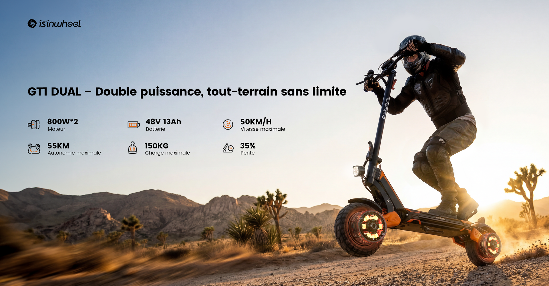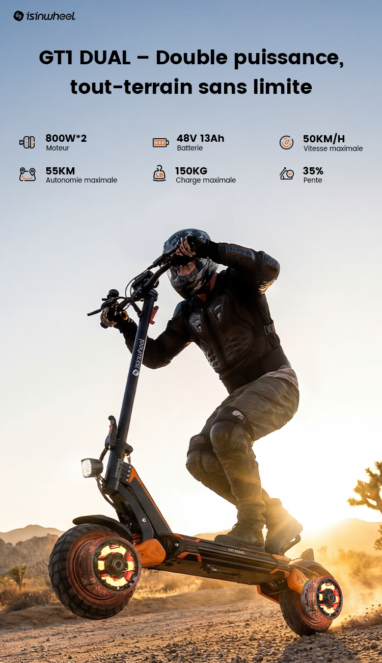 isinwheel GT1 DUAL Trottinette électrique tout-terrain à double moteur 1600W