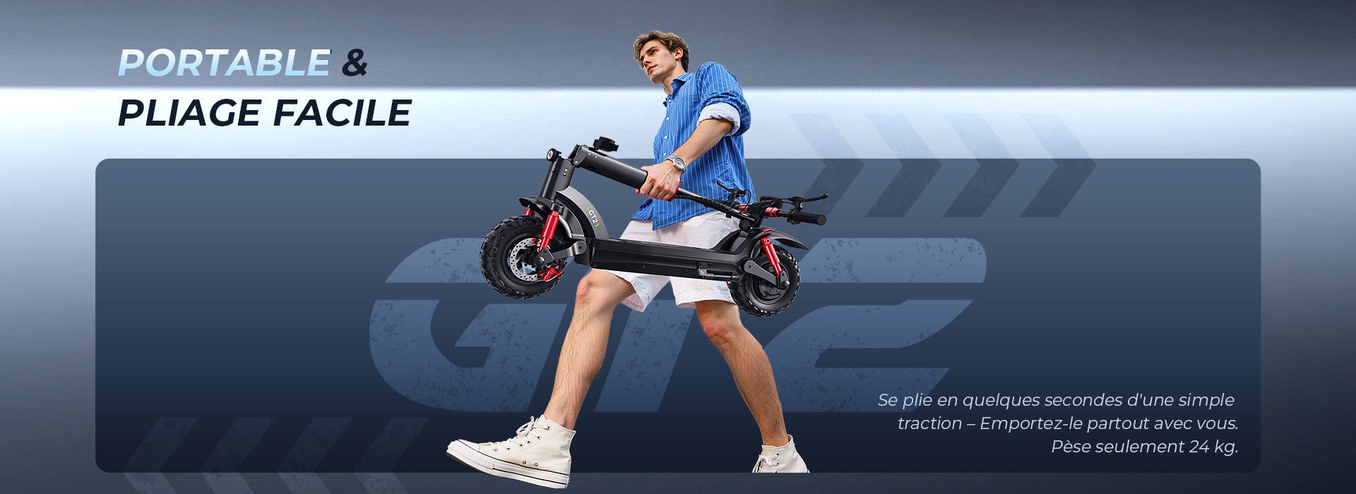 | Emballage inclus | Scooter électrique GT2*1 Clé hexagonale de type T * 1 Vis de poteau*6 (y compris 2 de rechange) Chargeur * 1 Câble de chargement * 1 Instructions*1 Étiquette volante * 1 Carte de marque * 1 Tube d'extension de chambre à air gonflable * 1 Sac de voiture * 1  |