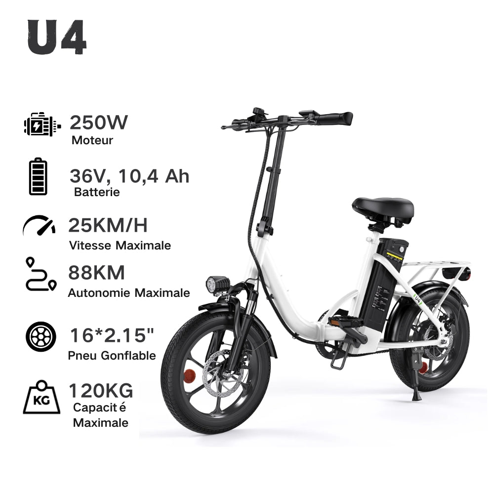 (4) Assurance et immatriculation : Il n’y a pas d’assurance obligatoire, mais il est recommandé de souscrire une assurance responsabilité civile ; les vélos qui répondent aux exigences n'ont pas besoin d'être immatriculés.