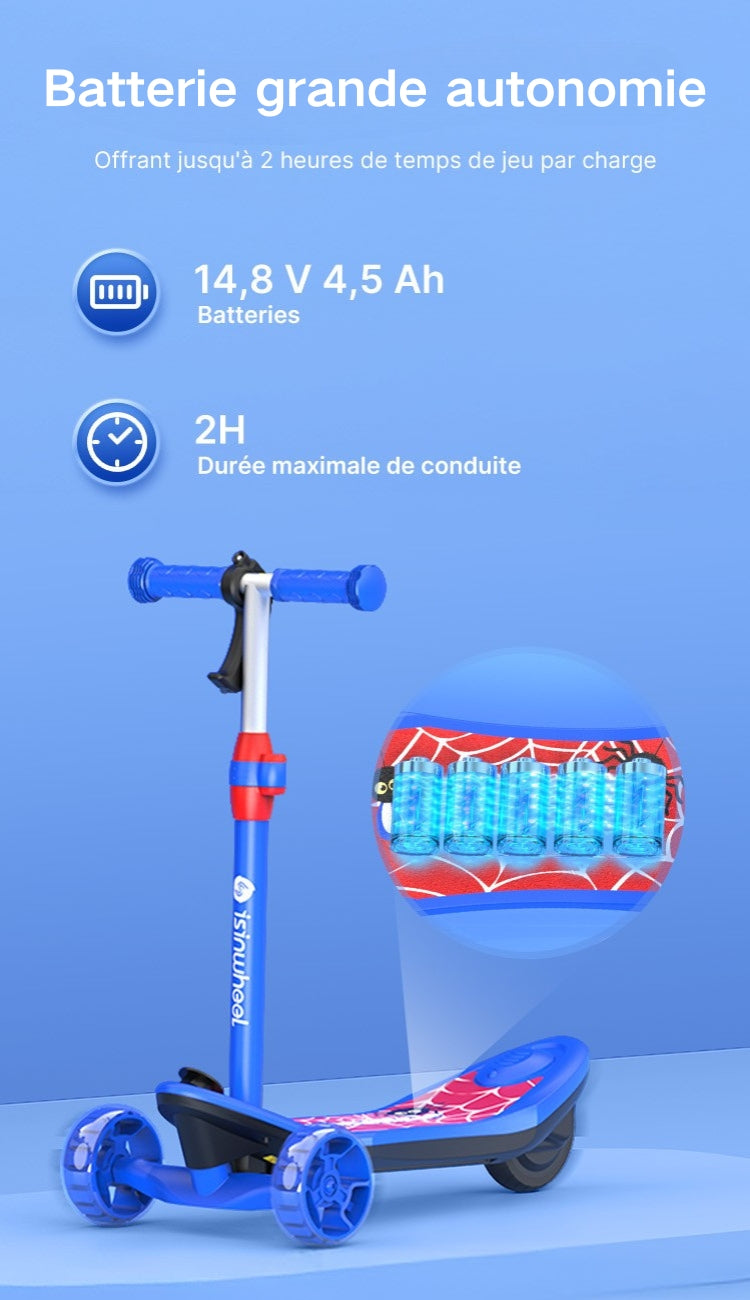 Après avoir allumé la trottinette, vous entendrez un son. Double-cliquez ensuite sur le bouton d’alimentation pour passer d’un mode de vitesse basse à 10 km/h (lumière verte) à un mode de vitesse haute à 16 km/h (lumière rouge).