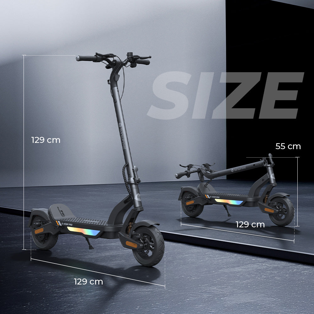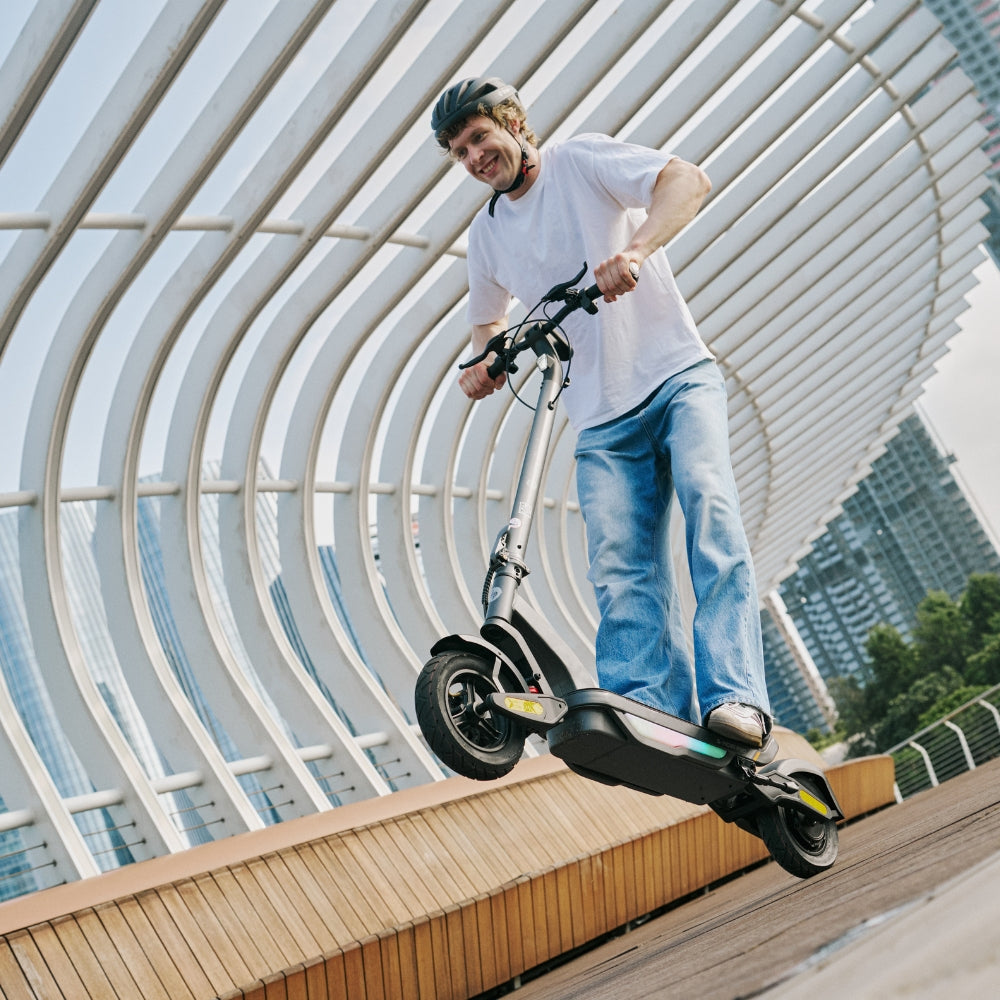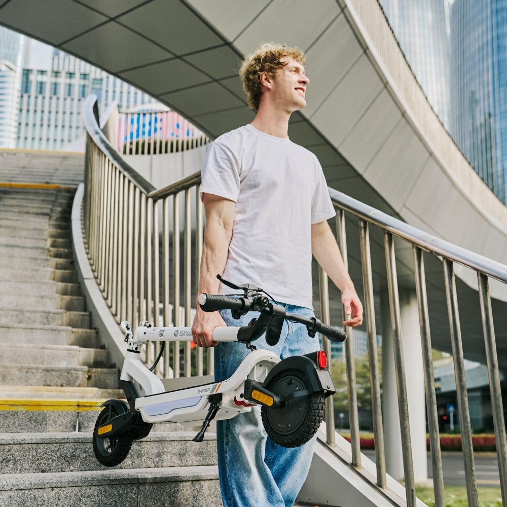 Un poids de 27,4 kg est raisonnable pour une trottinette électrique haute performance de cette catégorie. Pour la portabilité, nous avons conçu un système de pliage rapide en 1 clic. En seulement 3 secondes, la trottinette est pliée et verrouillée. Une fois pliée, elle peut être facilement rangée dans la plupart des coffres de voitures et est pratique pour les trajets combinés avec les transports en commun.