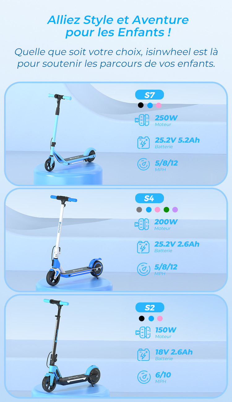 isinwheel S7 Trottinette électrique réglable pour enfants