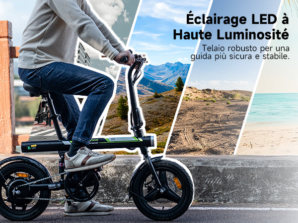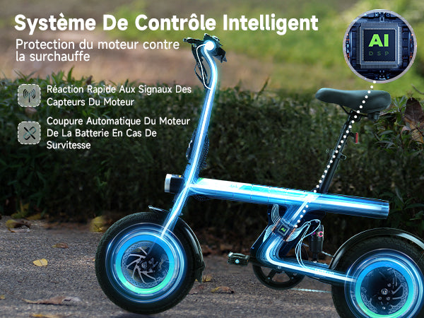 Pliable et portable, avec une autonomie de batterie de 45 km, adapté aux déplacements domicile-travail ou à la conduite de loisirs.