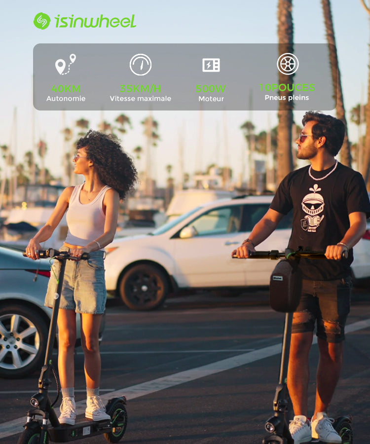 Moteur de 500W, batterie de 10Ah offrant une autonomie maximale de 40 km. Système d'éclairage amélioré avec clignotants brillants, phare, feu arrière et nouveaux clignotants de guidon.