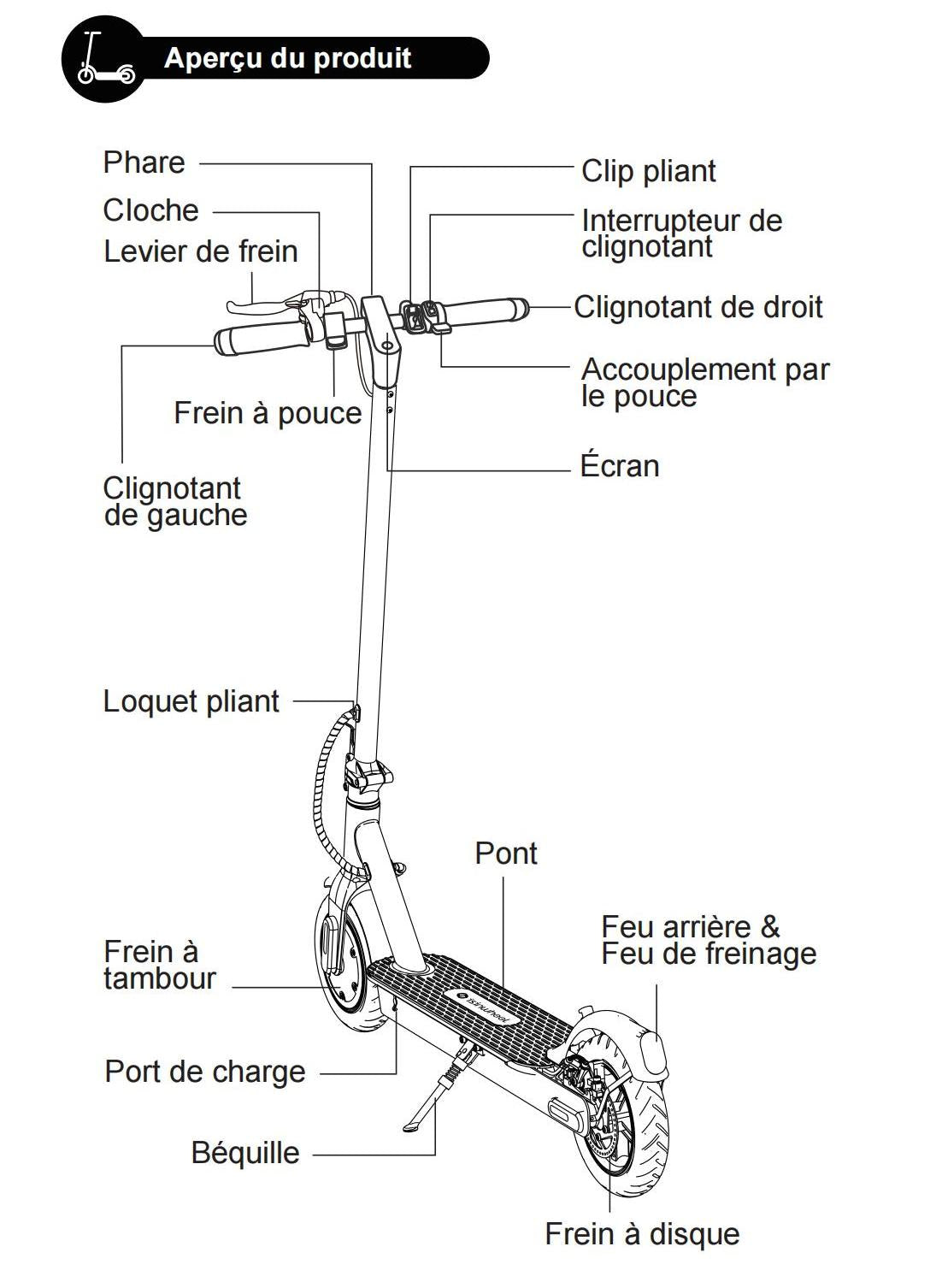 Trottinette électrique S9MAX*1 Un sac de rangement*1 Clé hexagonale de type T * 1 Vis de poteau*6 (y compris 2 de rechange) Chargeur * 1 Câble de chargement * 1 Instructions*1 Étiquette volante * 1 Carte de marque * 1 |